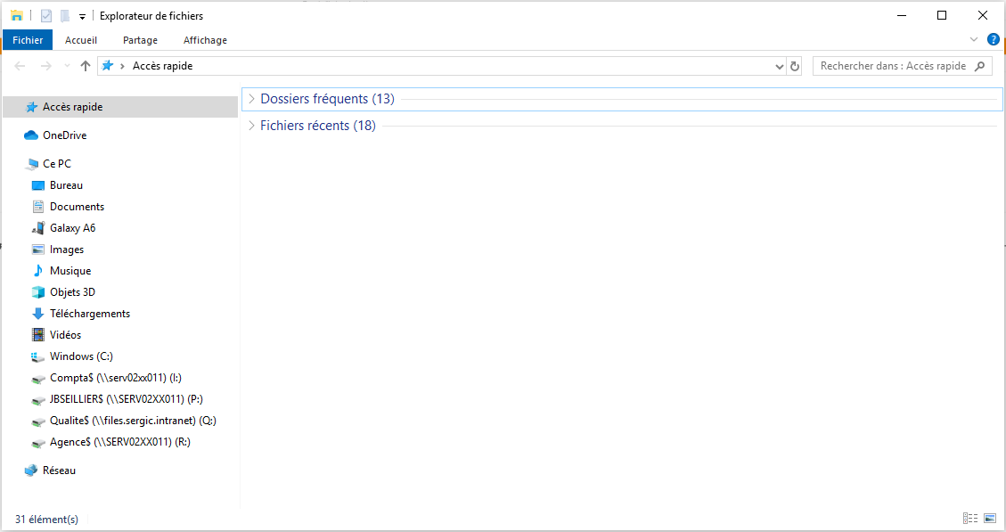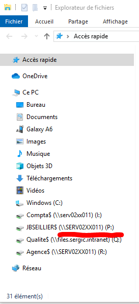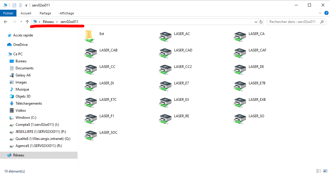 - Taper dans la barre de recherche WINDOWS l'adresse du serveur en respectant la nomenclature de celui-ci (indiqué à côté du disque profil) puis faire entrée. (exemple : \\SERV02XX011)