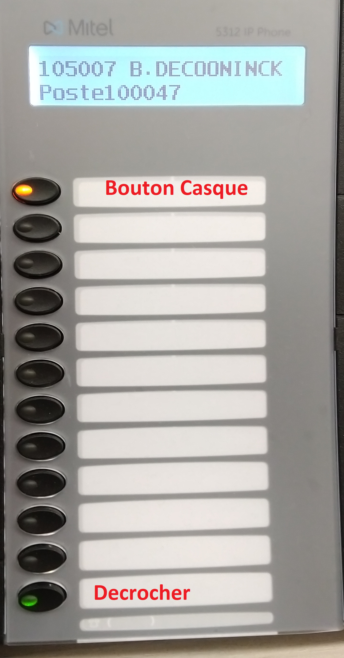 Pour décrocher vous devez appuyer sur la touche en bas à gauche elle clignotera vert comme ci-dessus