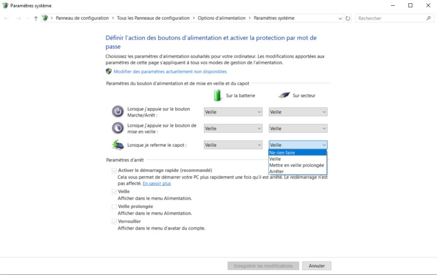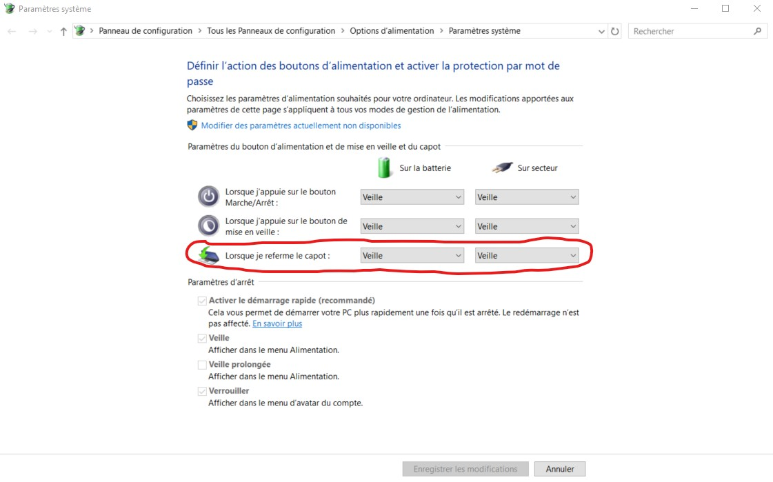 our que le PC portable ne se mette pas en veille quand l'écran est rabattu, il faut faire la manipulation suivante :