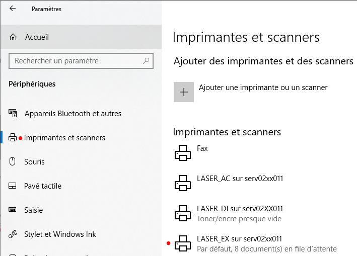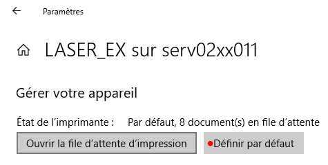 On clic sur l'imprimante que l'on souhaite positionner par défaut :