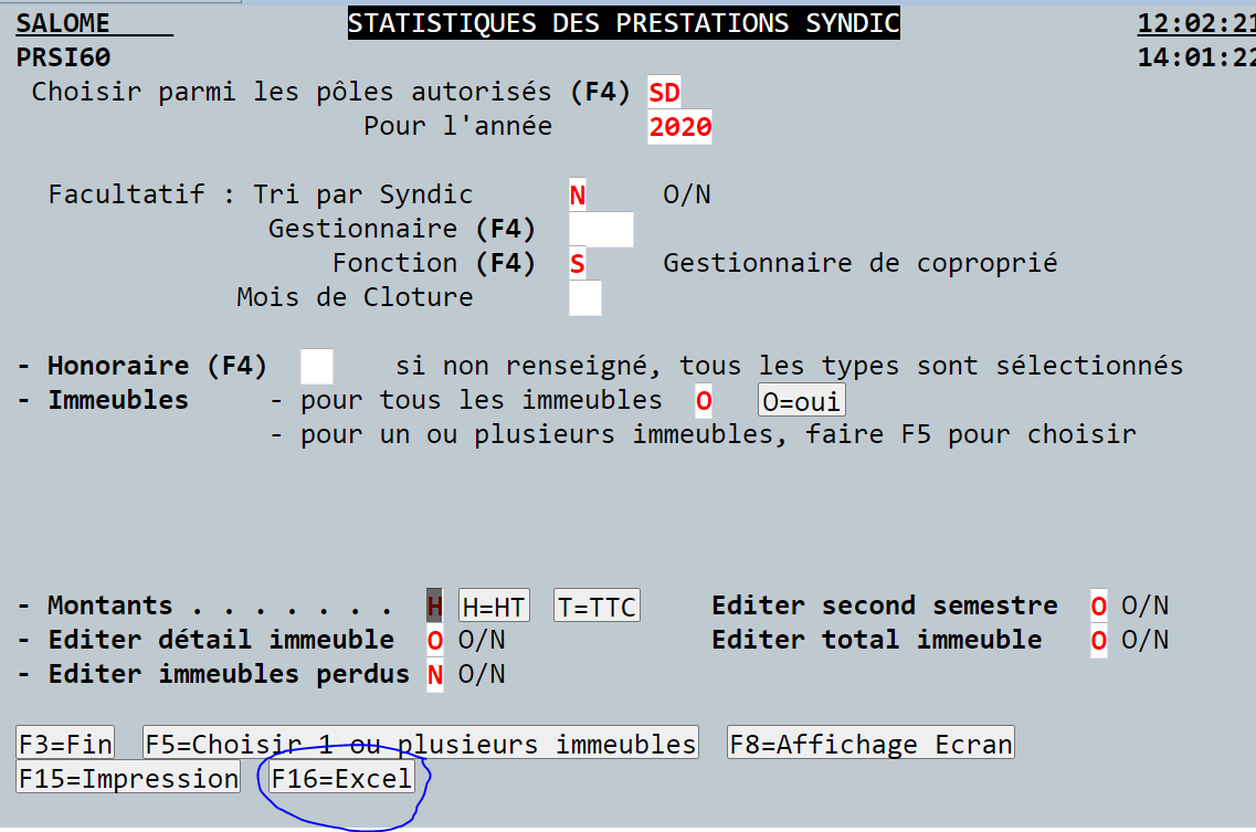 Lorsque vous demandez une extraction EXCEL (Option F16 voir impression écran ci dessous), il est possible qu'elle soit conséquente.