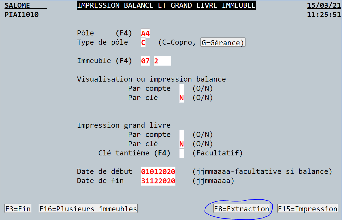 Vous pouvez extraire les écritures du grand Livre au format PDF (option F15) mais aussi au format Excel via l'option F8