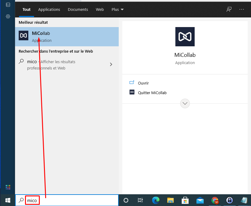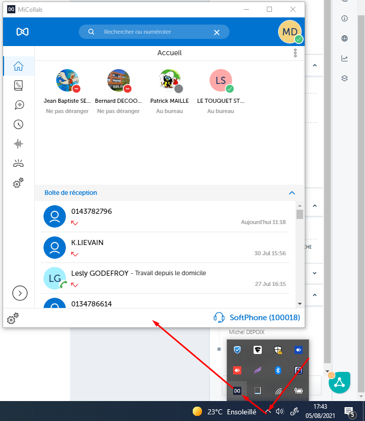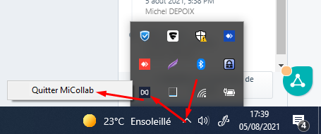 Si vous ne disposez pas d'un ordinateur attitré, il faut obligatoirement arrêter l'ordinateur lorsque vous avez terminé votre journée afin de fermer l'application Micollab.