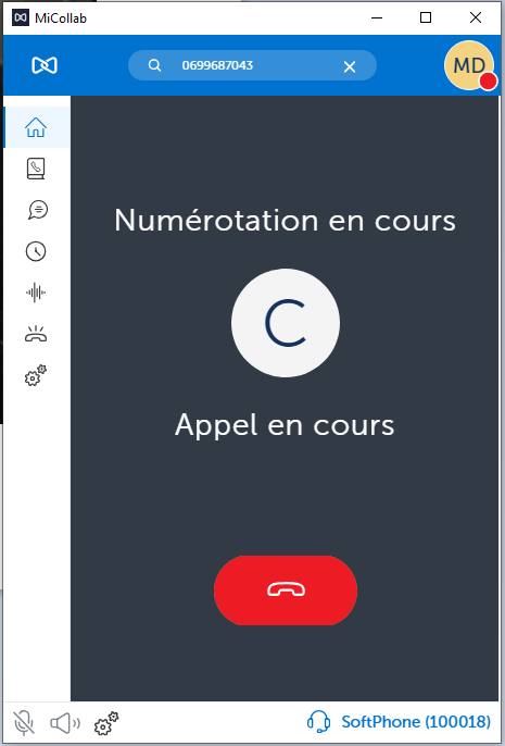 Par défaut nous avons deux états Micollab sélectionnant le SoftPhone :