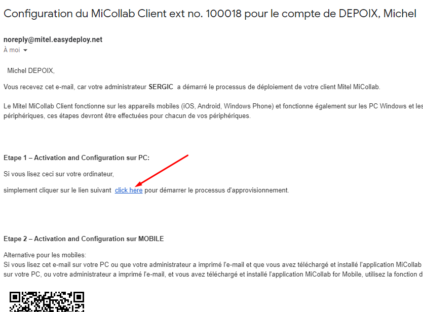 Vous recevez un mail permettant d'activer Micollab sur votre ordinateur.