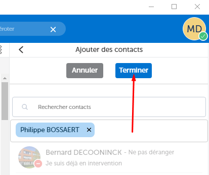 Sur la page Accueil, je vous conseille d'ajouter en contacts les personnes de votre équipe.