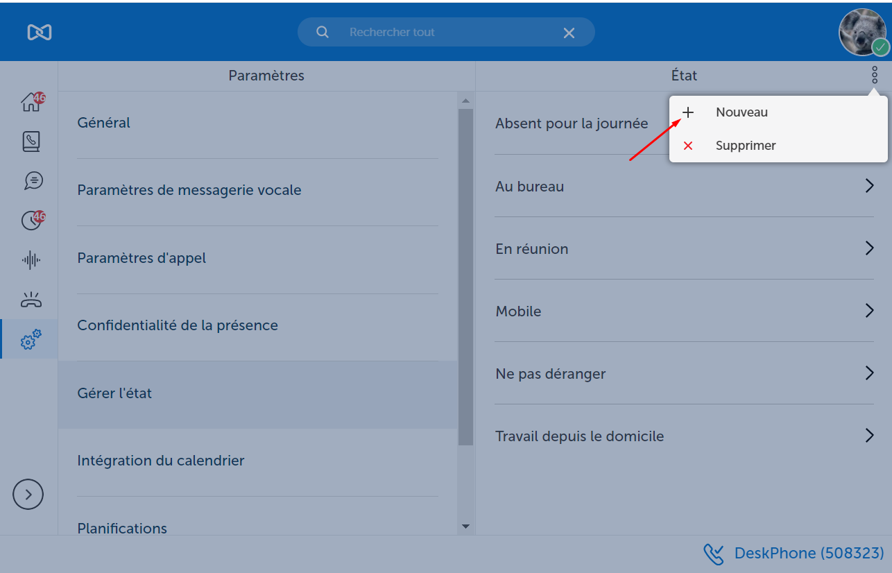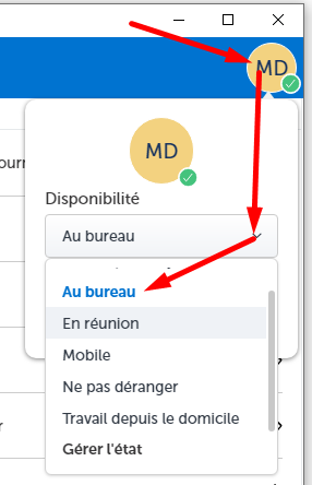 Attention, il faudra ensuite penser à changer votre état sur "Au bureau" pour de nouveau recevoir les appels