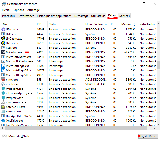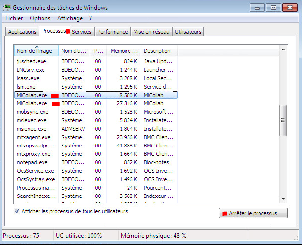 Trouver tous les Processus MiCollab.exe et faites Arrêter le processus