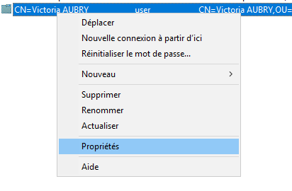 Sélectionner l’utisateur, et faire un clic droit, puis « propriétés »