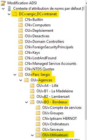 Il faut ensuite aller au niveau du profil utilisateur : (dans notre exemple, l’utilisateur se trouve sur BORDEAUX)