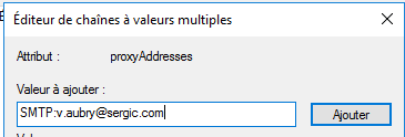 Modifier l’adresse en mettant la première lettre du prénom puis « point » le nom @ sergic.com