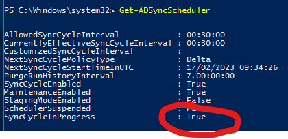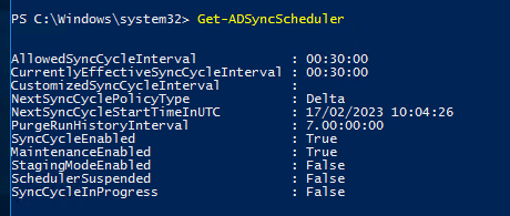 Pour cela lancer la commande : Get-ADSyncScheduler