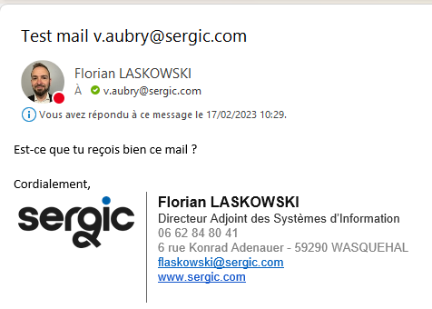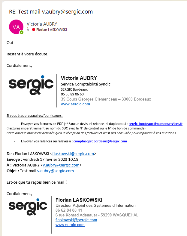Une fois cela fait, envoyer un mail de test à l’utilisatrice :