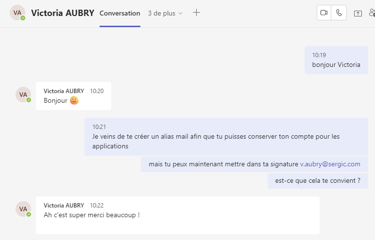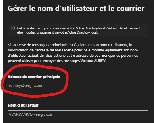 Nous avons changé le nom usuelle mais pas l’adresse mail.