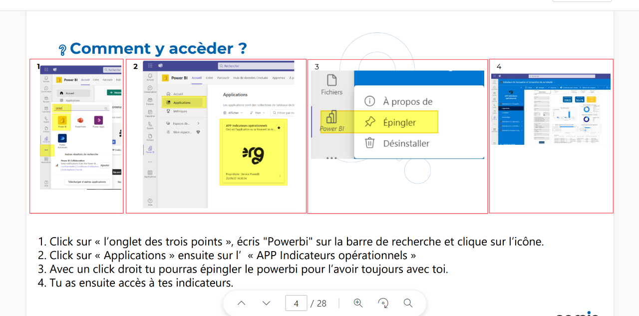 Pour accéder aux indicateurs cliquer sur l'icone autres app de teams (icone avec trois points qui se suivent en horizontale )