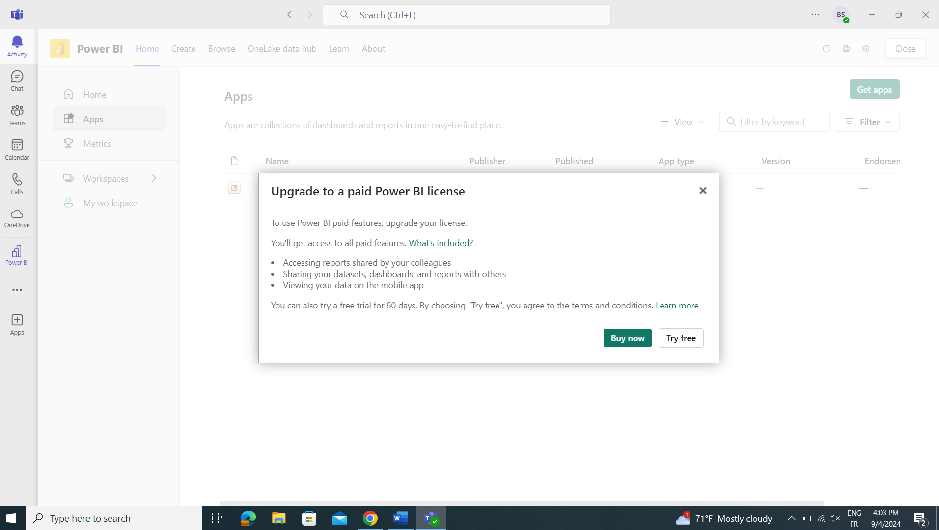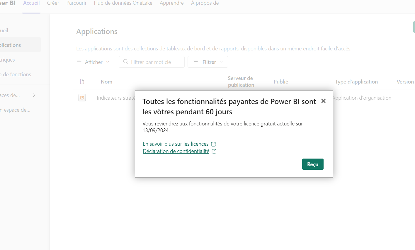 sur la barre de recherche rechercher l'app appelée PowerBI.