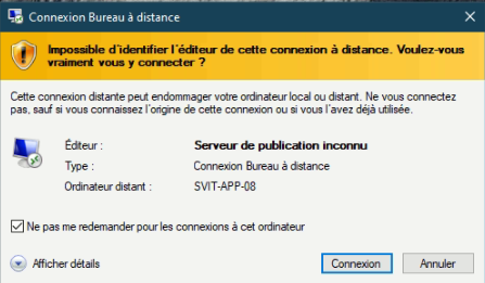 5. Cochez la case « Ne pas redemander pour les connexions à cet ordinateur »